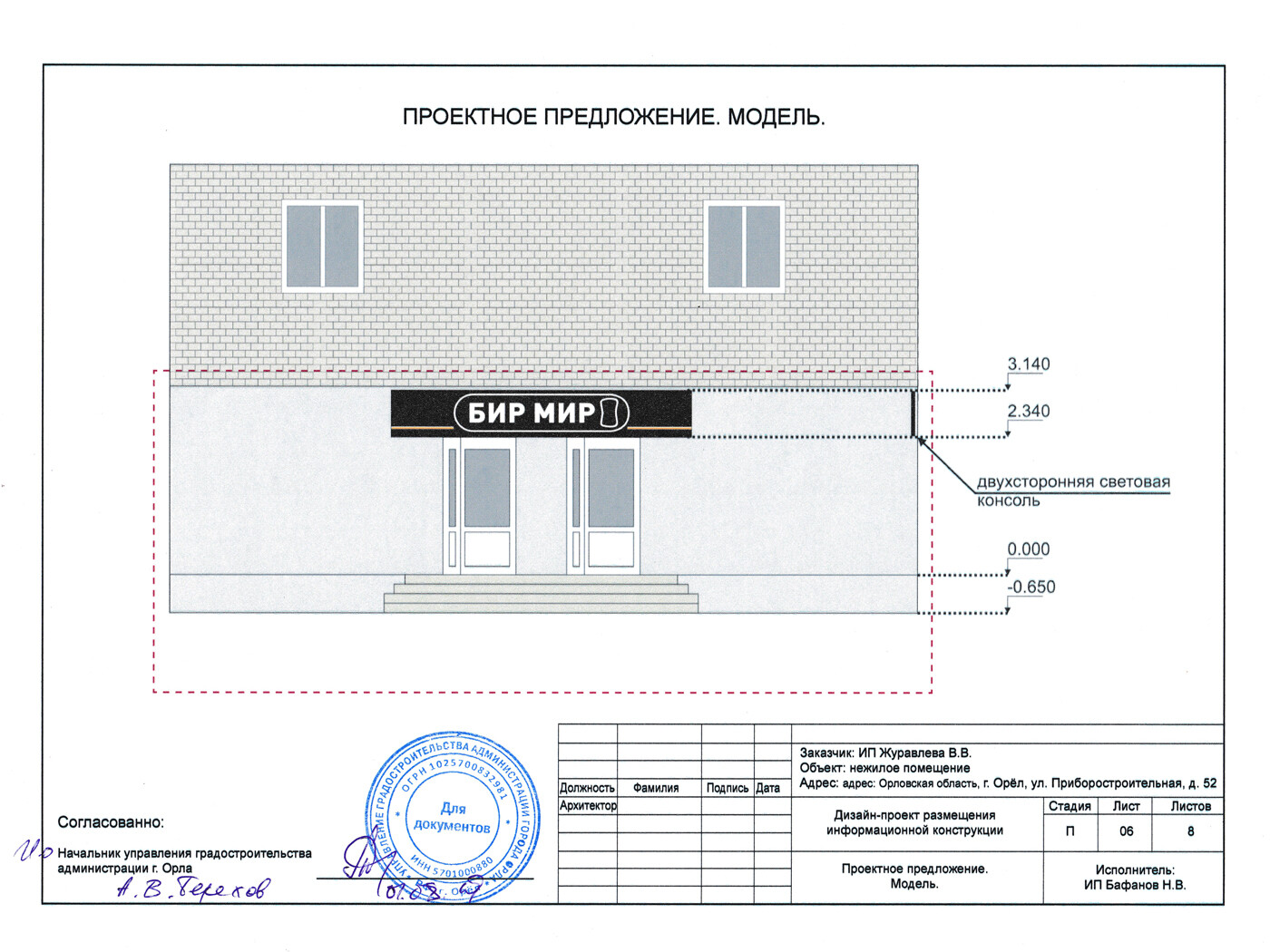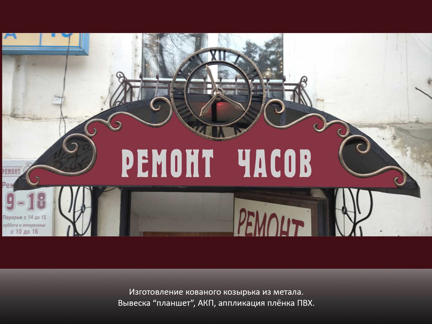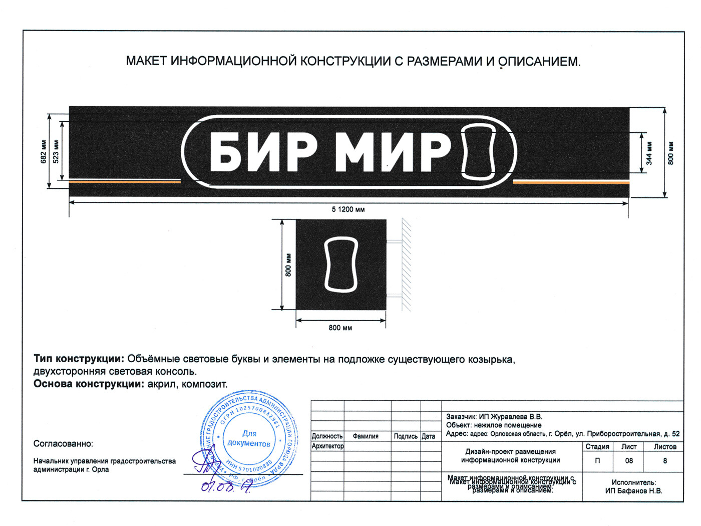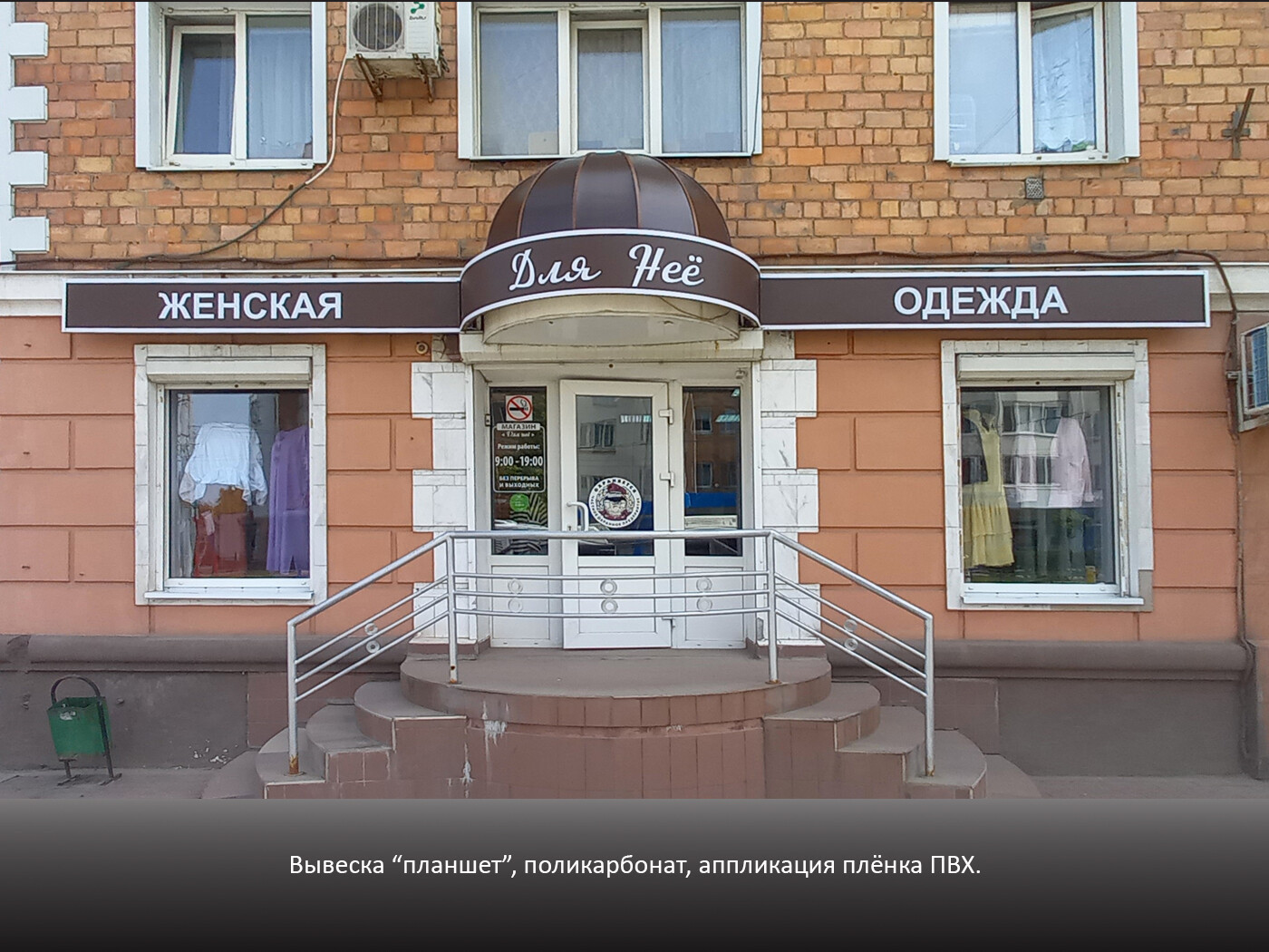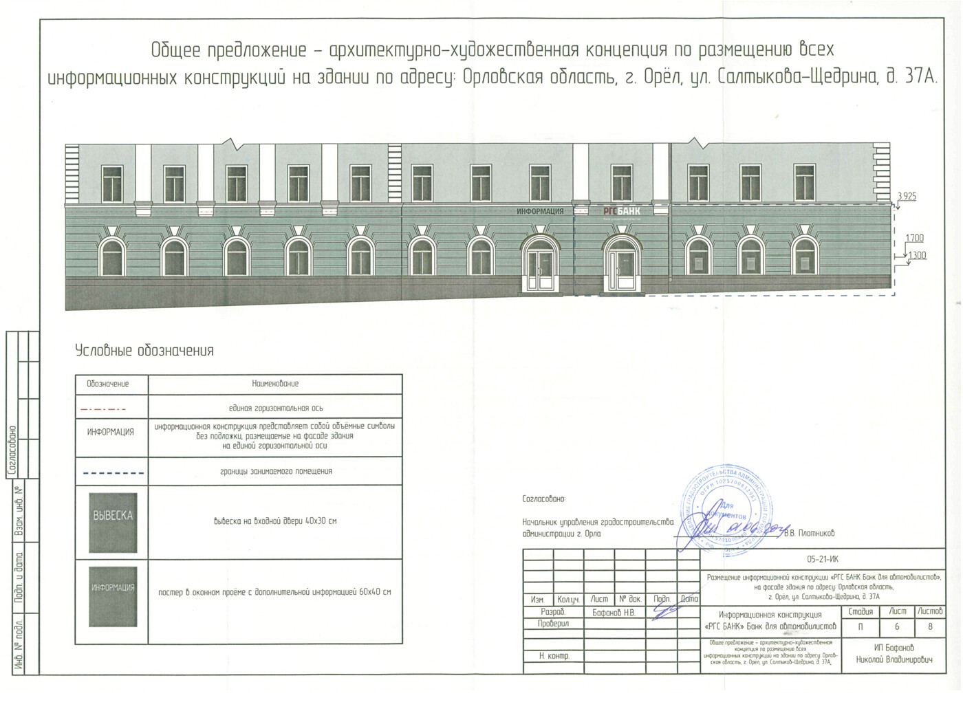 Информационная конструкция -размещается над входом или в непосредственной близости с ним, не содержит сведения рекламного характера и ограничена в размерах и техническом исполнении.