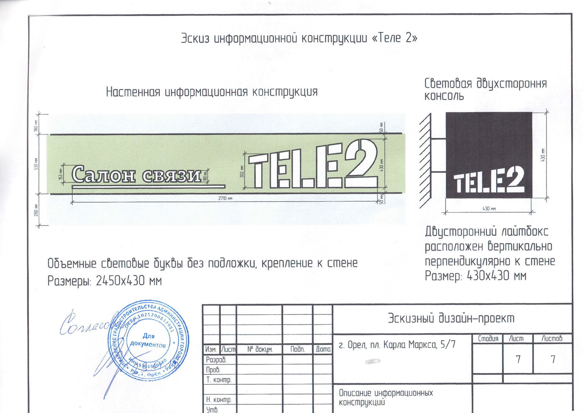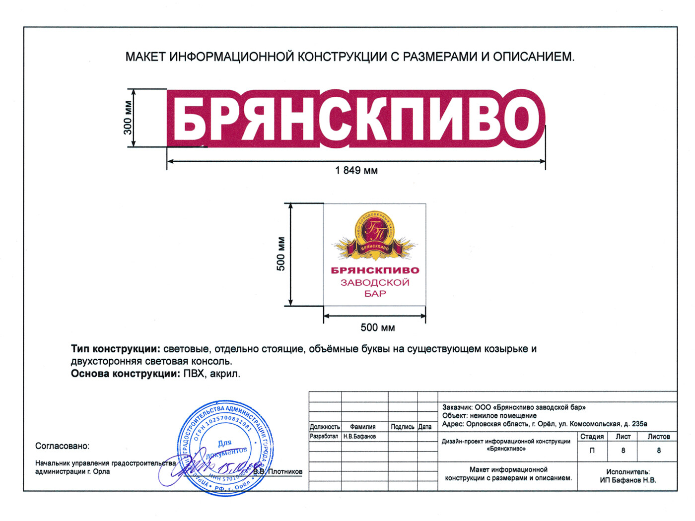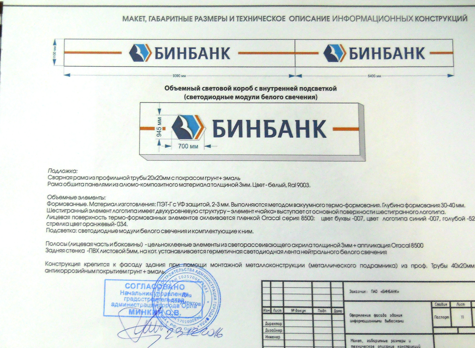 При заказе вывески - согласование в органах управления (разрешение на установку и эксплуатацию) бесплатно.