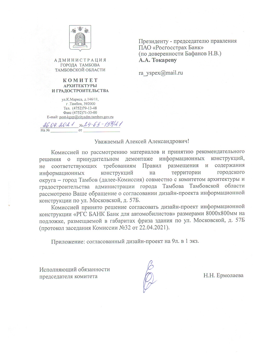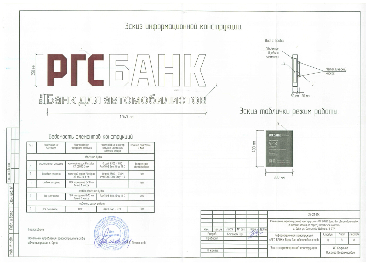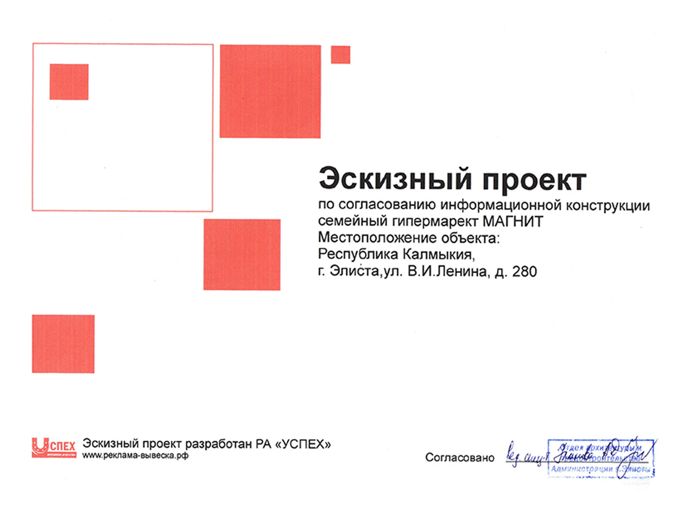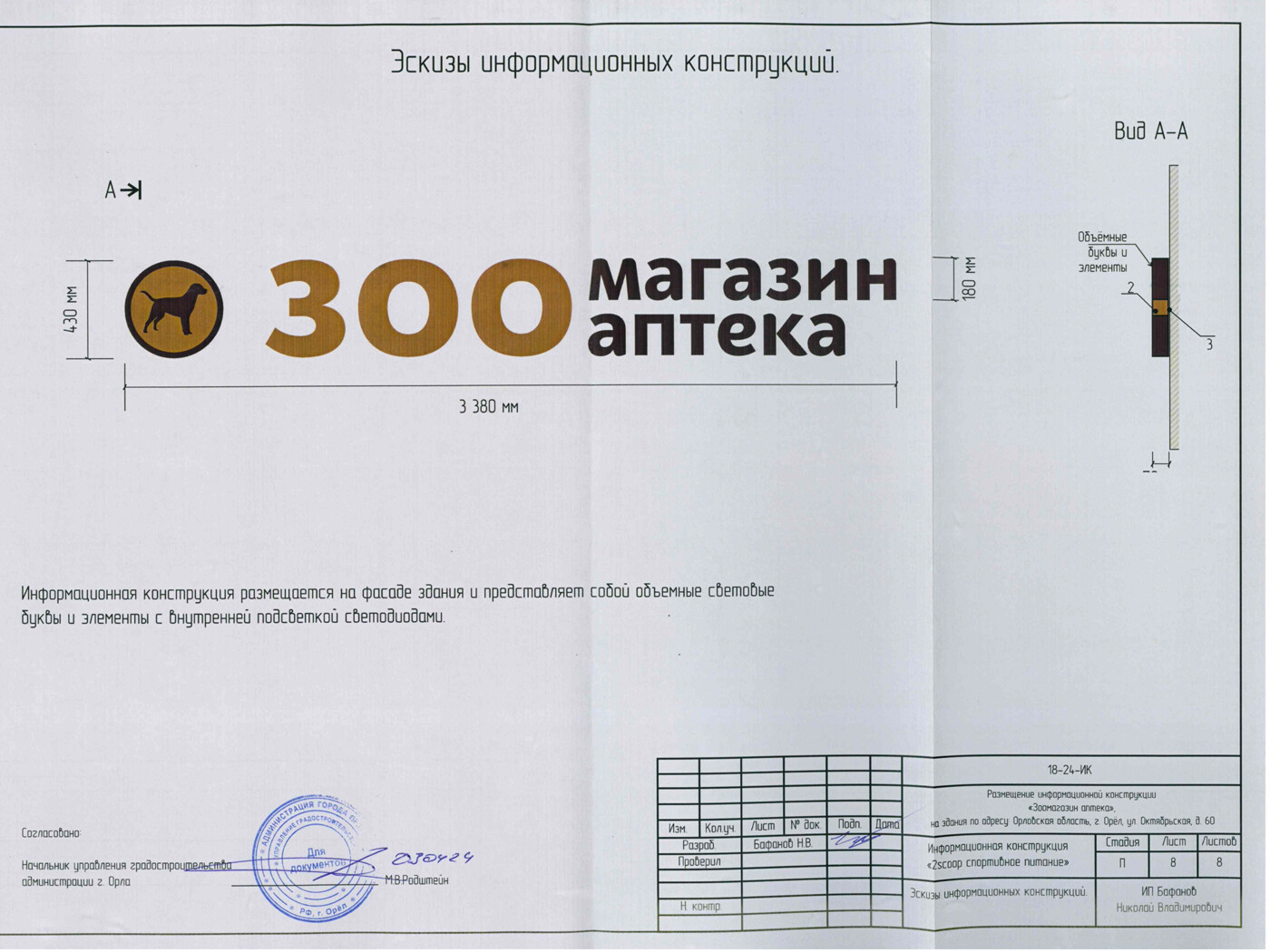 При заказе вывески - согласование в органах управления (разрешение на установку и эксплуатацию) бесплатно.
