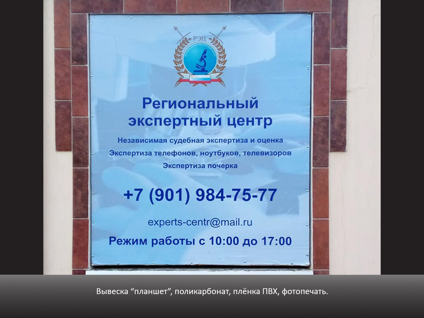 Вывеска "планшет", вывеска без объемных элементов