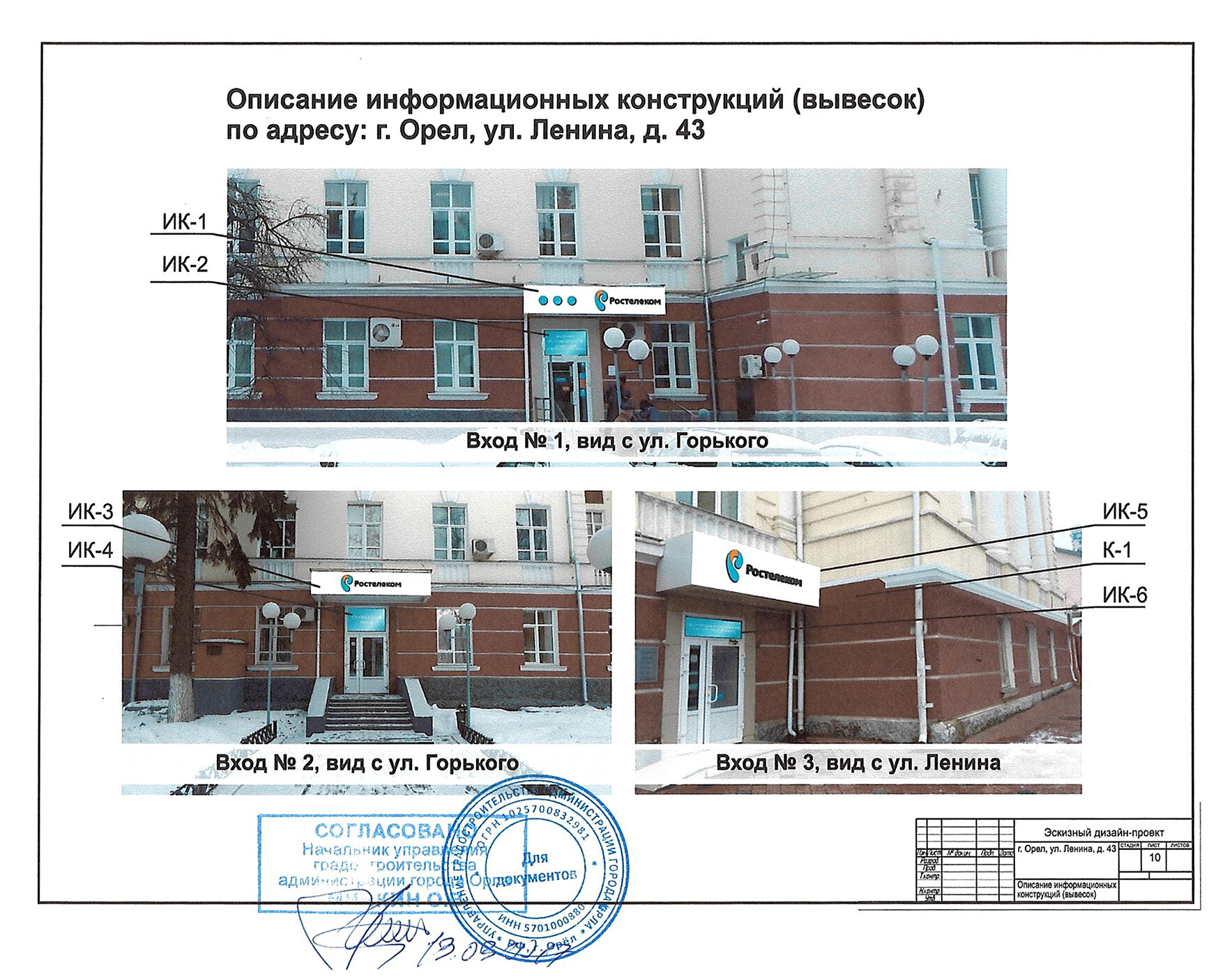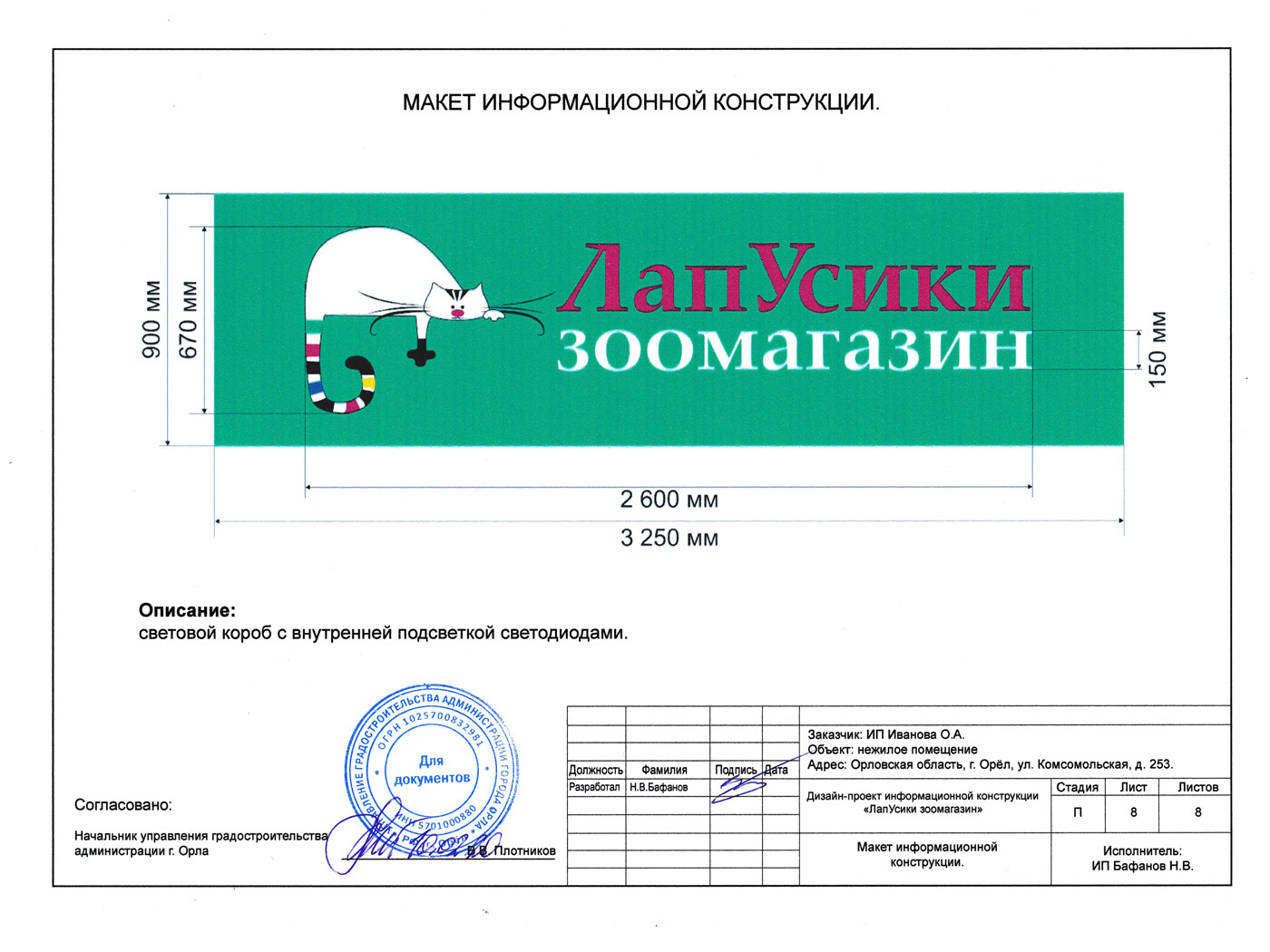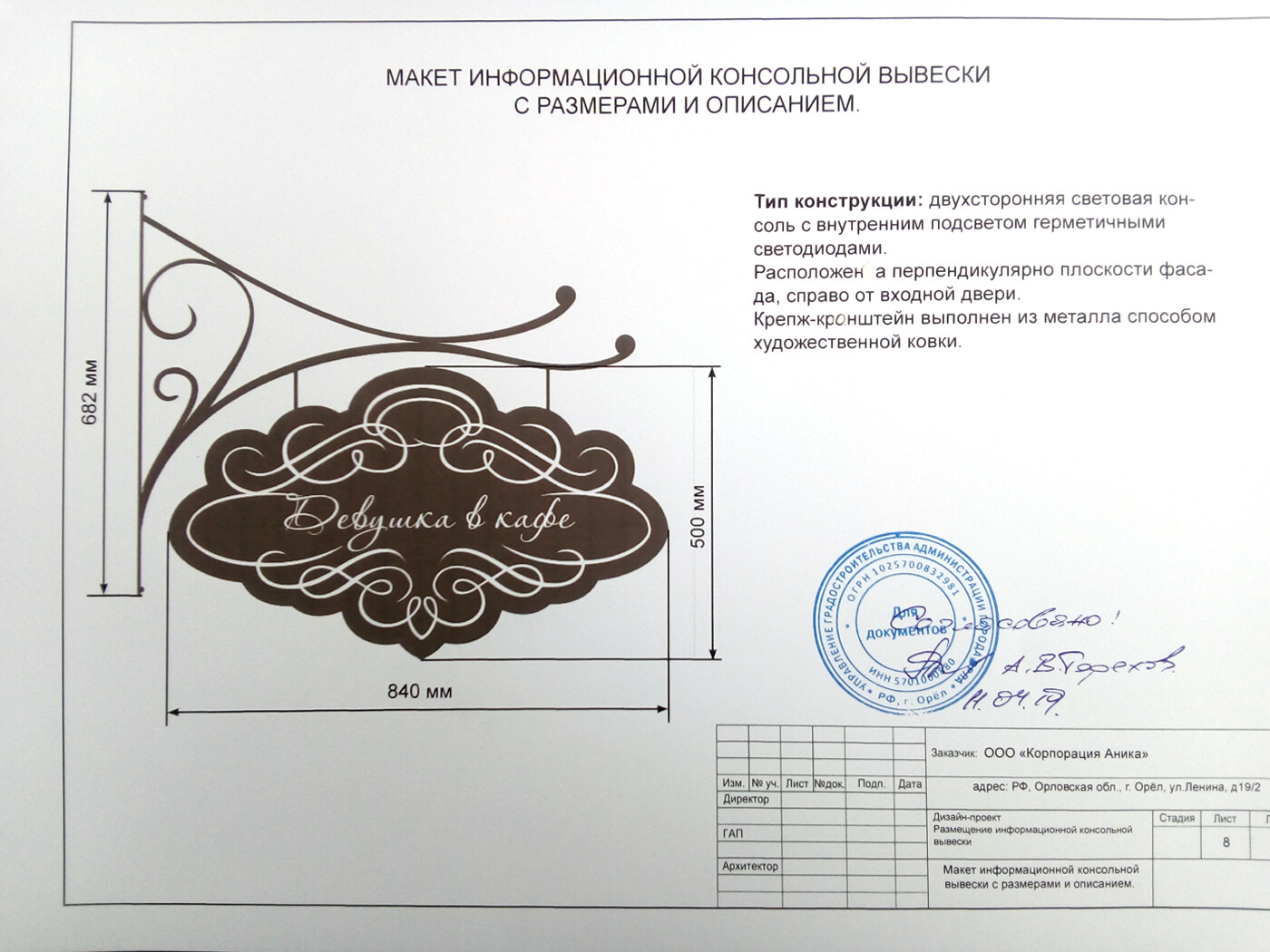 При заказе вывески - согласование в органах управления (разрешение на установку и эксплуатацию) бесплатно.