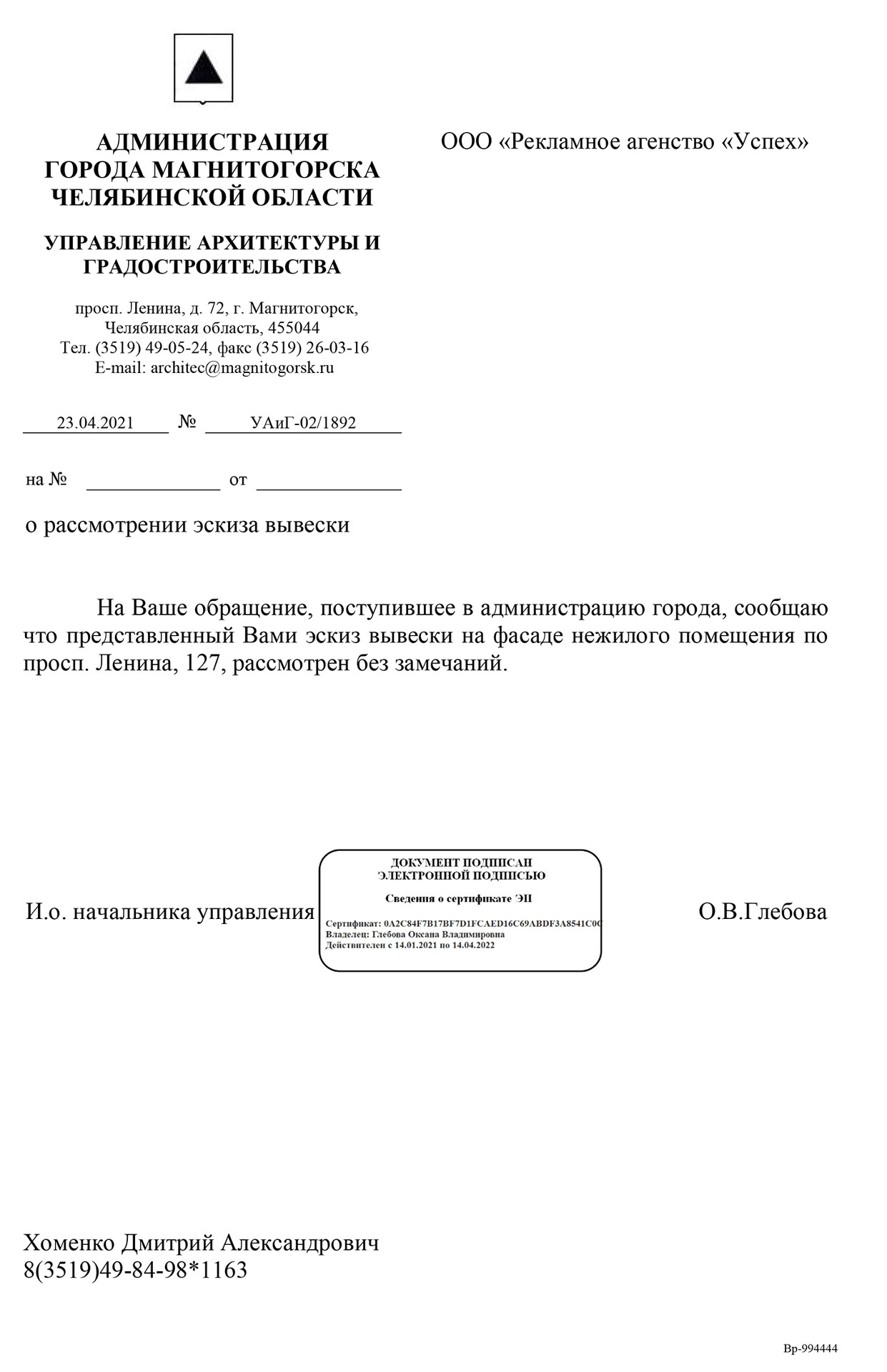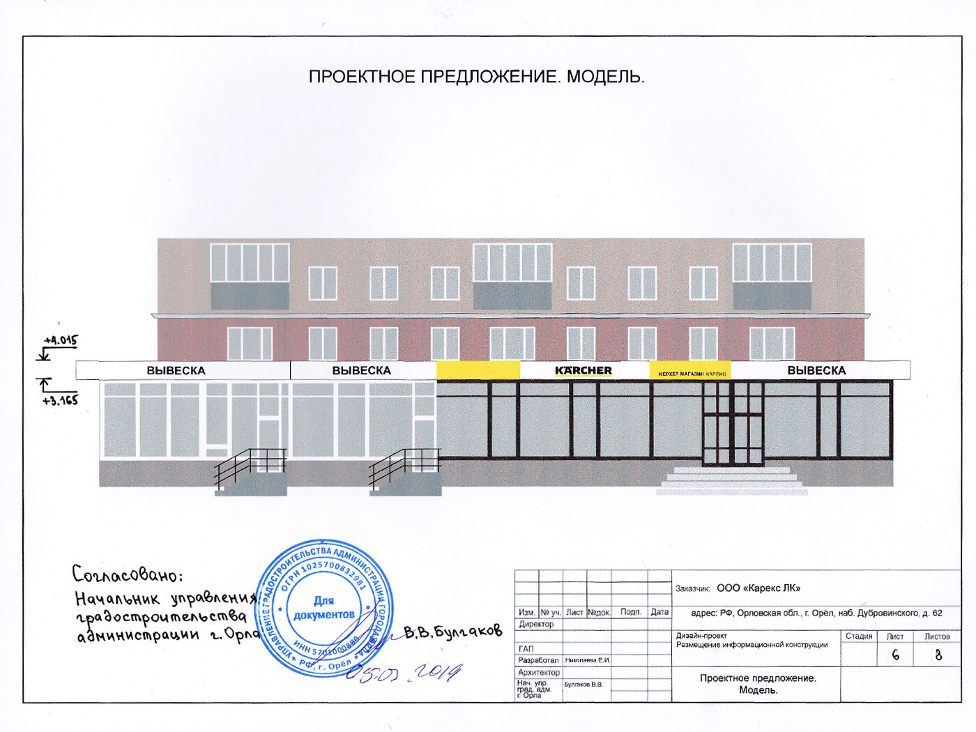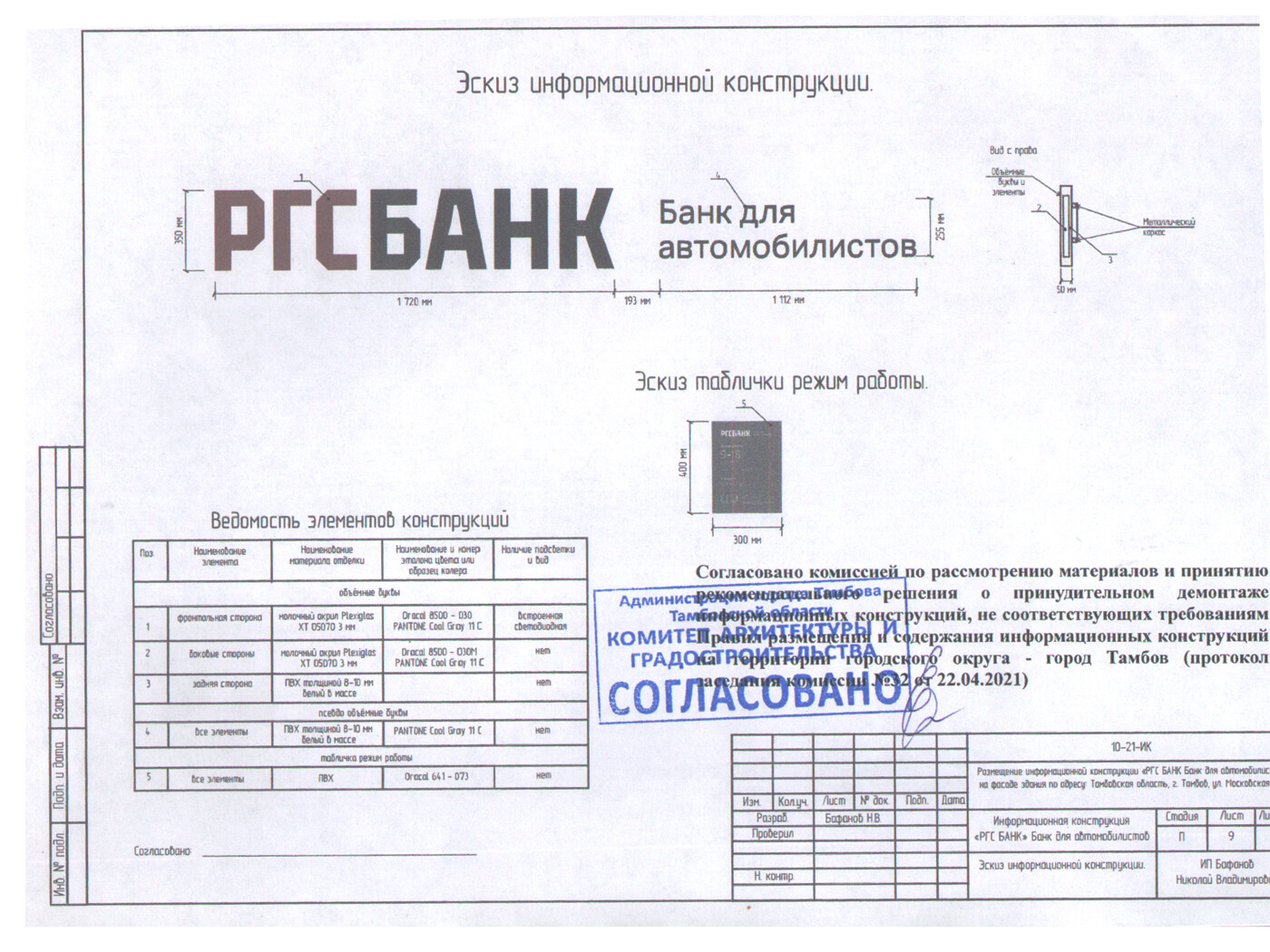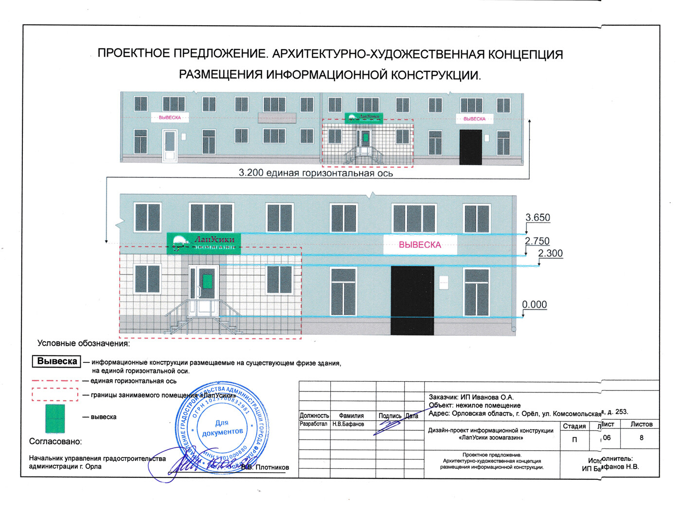 При заказе вывески - согласование в органах управления (разрешение на установку и эксплуатацию) бесплатно.
