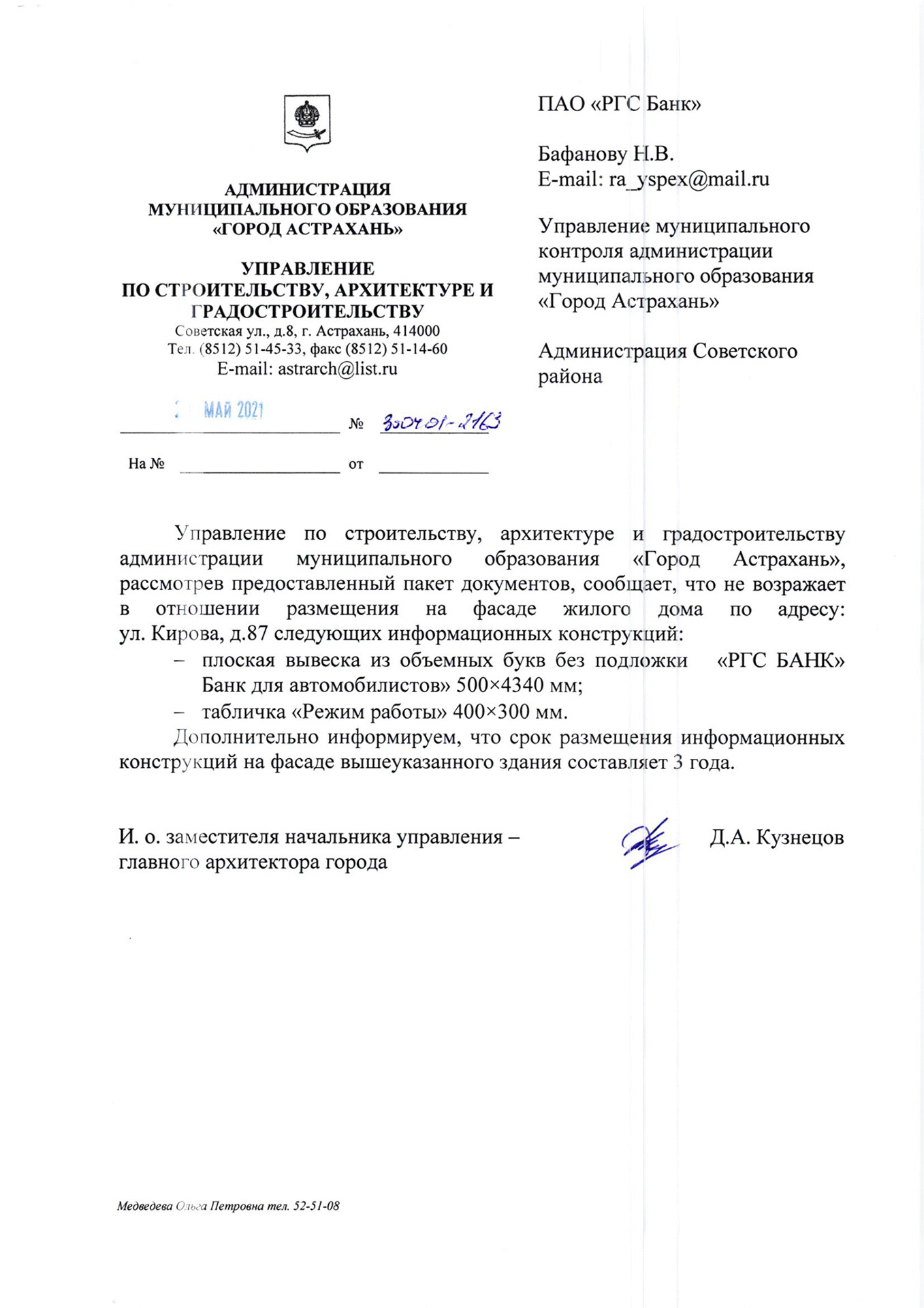 Как правило, в большинстве муниципальных образований, документы на согласование информационных конструкций (ИК) и вывесок подают в "Управление архитектуры и градостроительства", а на рекламные конструкции (РК) в "Департамент имущества и земельных отношений". Иногда эти функции на себя берёт администрация района, на территории которого планируется установка РК или ИК.