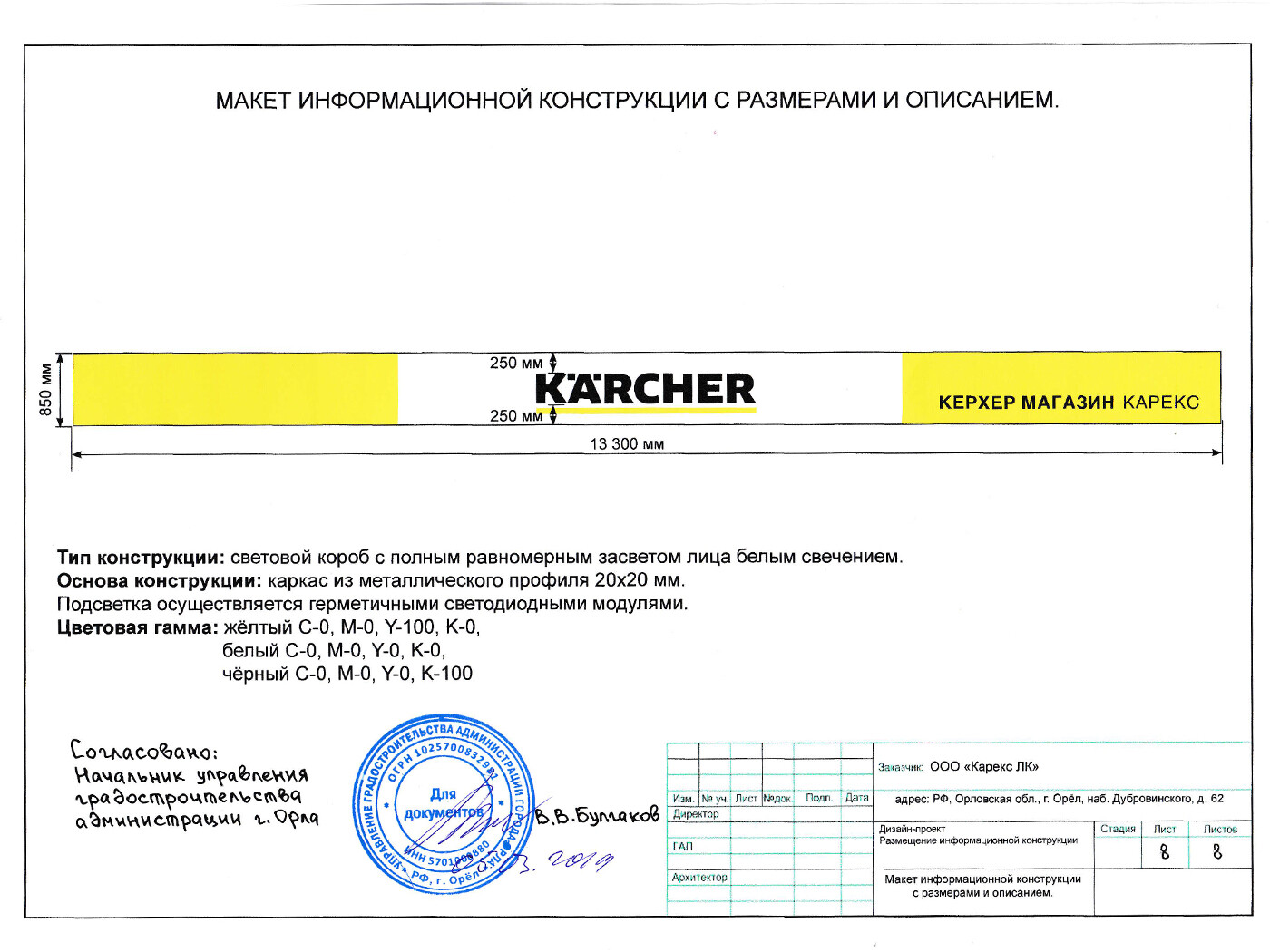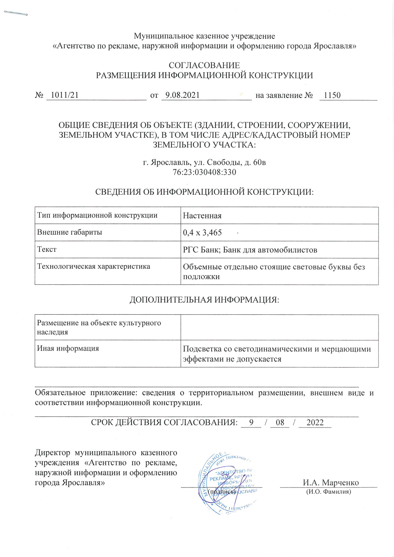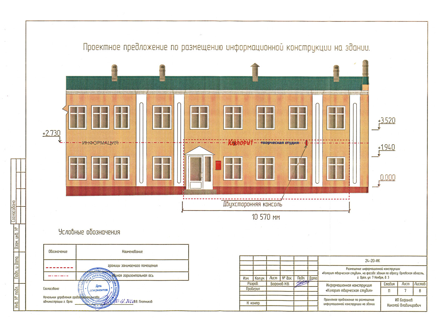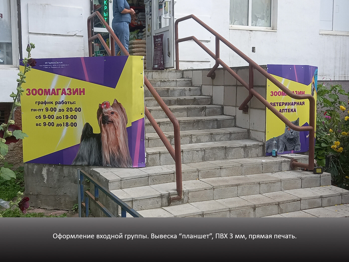 Информационная конструкция -размещается над входом или в непосредственной близости с ним, не содержит сведения рекламного характера и ограничена в размерах и техническом исполнении.