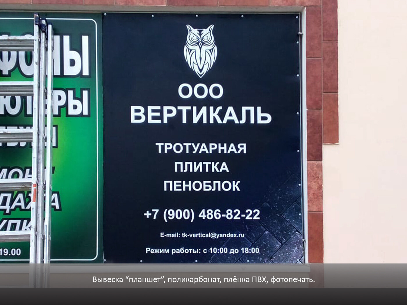 Вывеска "планшет", вывеска без объемных элементов