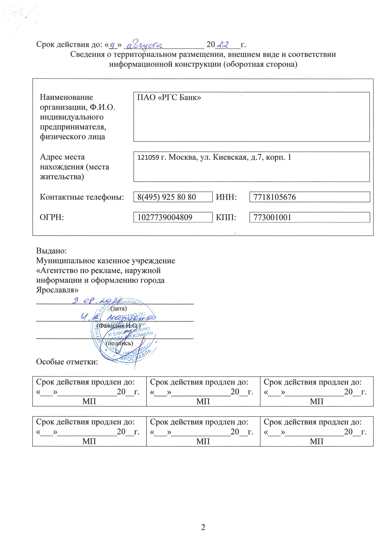 - получение паспорта рекламного места;