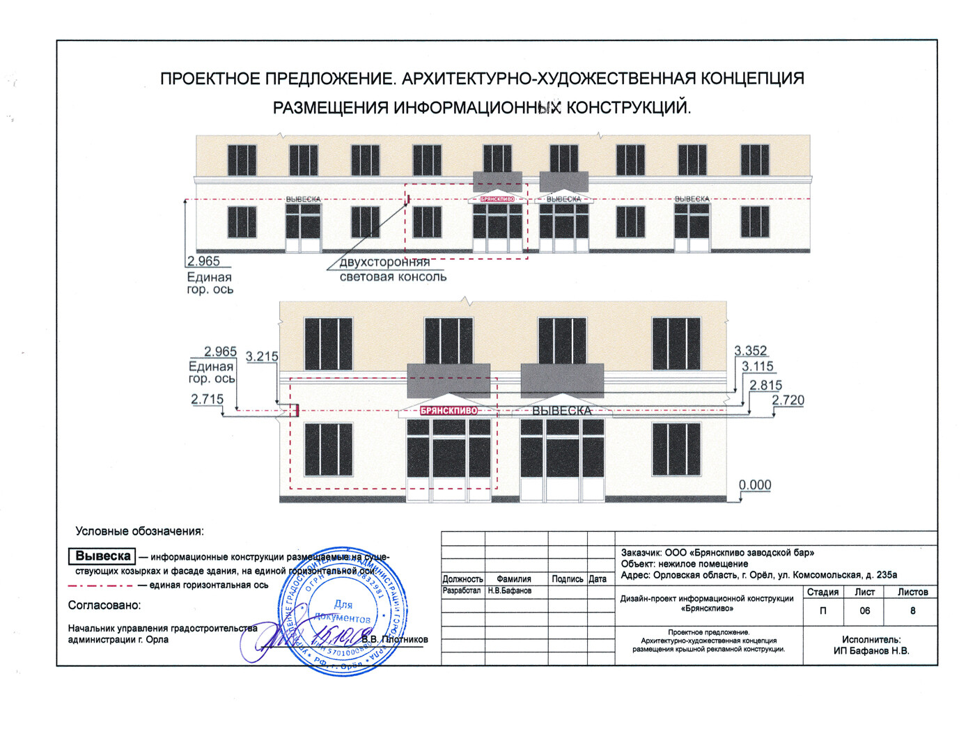 Согласовывать необходимо любые средства наружной рекламы и информации, а так же любые изменения внешнего облика фасада здания.
