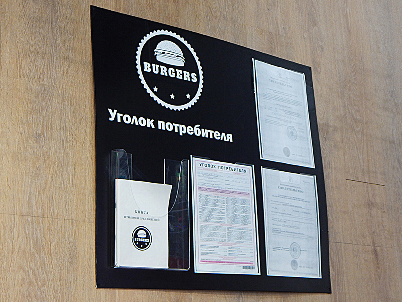 Таблички, указатели, уголки потребителя, планы пожарной эвакуации и пр.